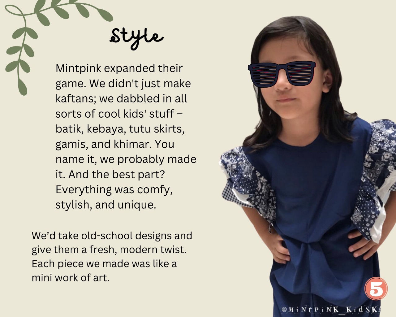 It all started with kaftans, and based on customer demand, Mintpink expanded its product line to include abayas, batik, kebayas, as well as tunics and tutu skirts. This evolution reflects our commitment to offering a diverse range of stylish and comfortable clothing for kids, ensuring that every little one can express their unique style.